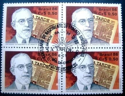 Quadra de selos postais comemorativos, MINT, obliterados com CPD (carimbo de 1º dia de circulação) e CBC (carimbo comemorativo de lançamento) de SALVADOR / BA