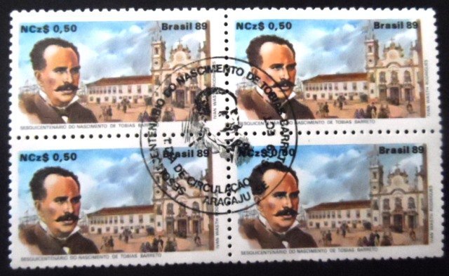 Quadra de selos postais Comemorativos, com goma, NÃO CIRCULADA, obliterada com Carimbo Único Comemorativo / 1º Dia de Circulação de Aracajú / SE