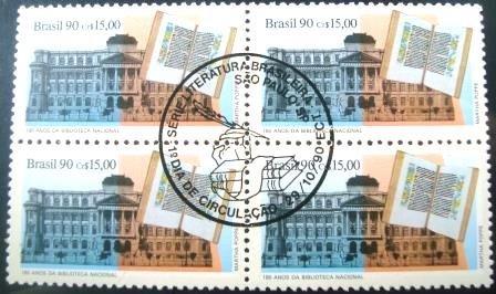 QUADRA de selos postais comemorativos, MINT, obliterados com