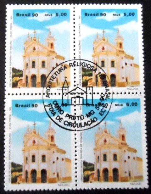 Quadra de selos postais Comemorativos, NÃO CIRCULADA, com a goma perfeita, obliterada com
