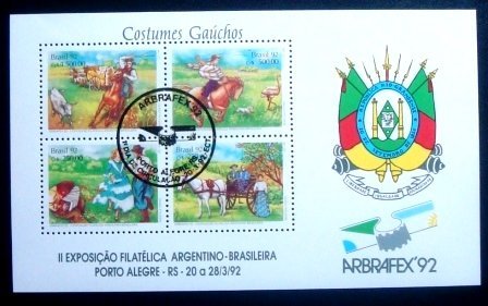 Bloco postal Comemorativo com a goma perfeita, NÃO CIRCULADO, obliterado com Carimbo Comemorativo e de 1º Dia de Circulação de PORTO ALEGRE / RS