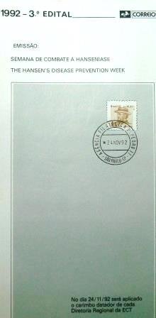 Edital de lançamento SELADO, contendo o selo obliterado Com Carimbo da Agência Filatélica de D. Pedro II de São Paulo de 24.11.92