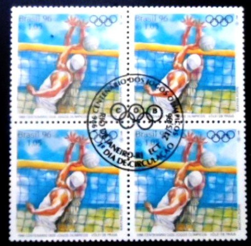 Quadra de selos postais Comemorativos com goma, obliterada com Carimbo Único CBC/CPD do Rio de Janeiro – RJ