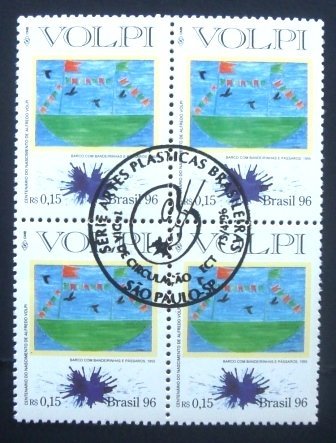 Quadra de selos postais Comemorativos com a goma perfeita, NÃO CIRCULADOS, obliterados com Carimbo Comemorativo e de 1º Dia de Circulação de SÃO PAULO / SP