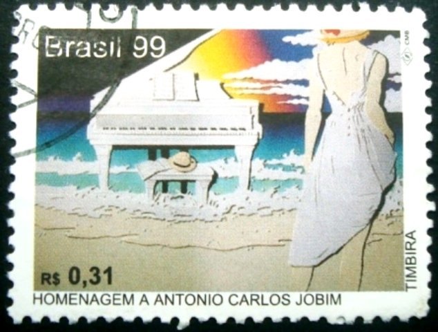 Selo postal do Brasil de 1936 Carlos Gomes carmim M