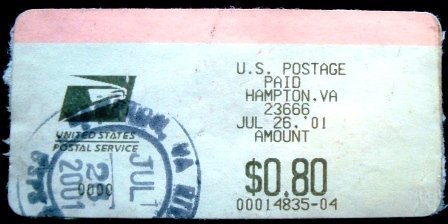 2001 – ATM US Postage Hampton.VA 0,80