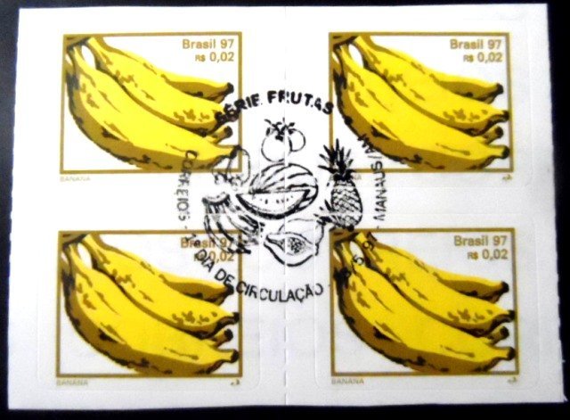 Quadra de selos Regulares NÃO CIRCULADA, autoadesivos, obliterada com Carimbo Único de 1º Dia e CBC de MANAUS-AM