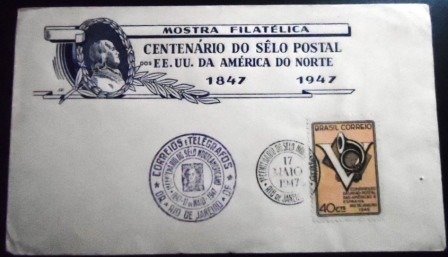 Cartão Comemorativo alusivo a Mostra Filatélica Centenário Selo Postal Americano, obliterado com Carimbos