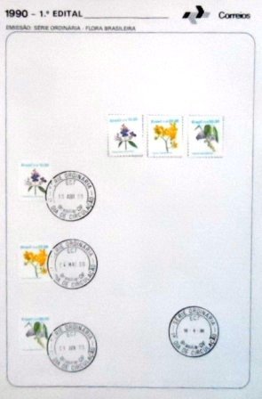 1º Edital de lançamento, com 6 Selos Regulares, obliterado com Carimbo de 1º Dia de Circulação de Brasília – DF