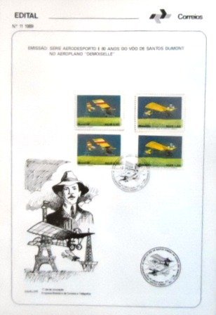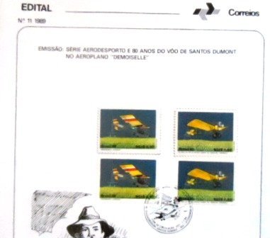 Edital de lançamento nº 11 SELADO com quatro selos Comemorativos, obliterado com Carimbo Único de Santos Dumont / MG