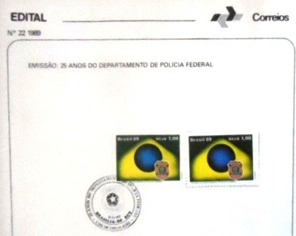 Edital de lançamento nº 22 Selado com dois selos Comemorativos, obliterado com Carimbo Único CPD / CBC de Brasília – DF