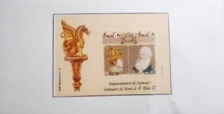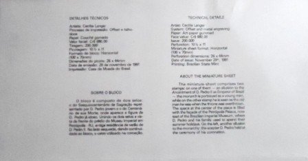 Emissão oficial contendo Bloco Comemorativo não obliterado com informações técnicas sobre a emissão