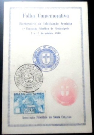 Folhinha Filatélica Comemorativa Selada, obliterada com Carimbo Comemorativo de Florianópolis / SC
