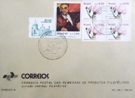 Franquia Postal com 5 selos Regulares e 1 Comemorativo obliterados com Carimbo Comemorativo Congresso Internacional de Filatelia Filatélica de