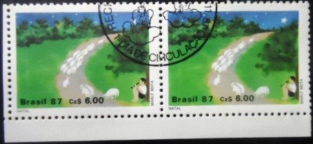 Par de selos postais Comemorativos obliterado. com goma, Não Circulado