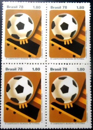 Quadra de selos do Brasil de 1982 Jogada de Futebol