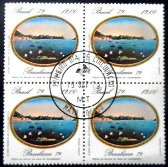 Quadra de selos postais Comemorativos com goma, obliterada com Carimbo de 1º Dia de Circulação do Mato Grosso, Não Circulada