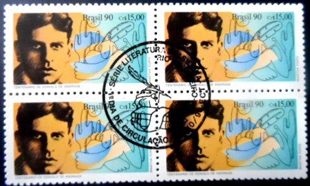 Quadra de selos postais Comemorativa com goma, obliterada com Carimbo Único do Rio de Janeiro – RJ, Não Circulada