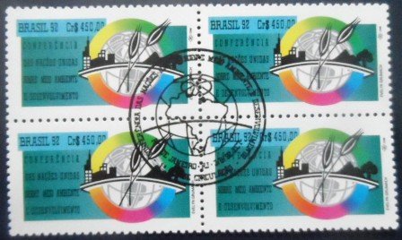 Quadra de selos postais Comemorativa com goma, obliterada com Carimbo Único CPD / CBC do Rio de Janeiro – RJ, Não Circulada
