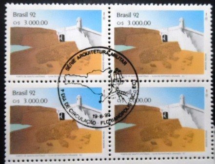Quadra de selos postais Comemorativa com goma, obliterada com Carimbo Único de Florianópolis – SC, Não Circulada