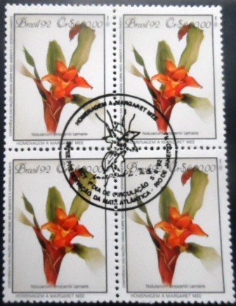 Quadra de selos postais Comemorativa com goma, obliterada com Carimbo Único CPD / CBC do Rio de Janeiro – RJ, Não Circulada
