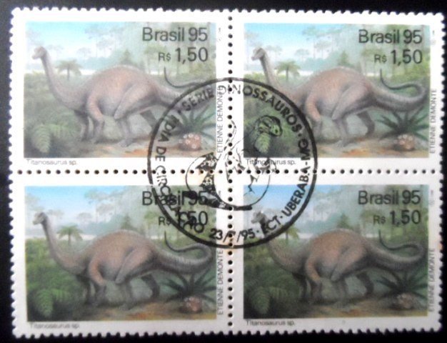 Quadra de selos postais Comemorativa, Não Circulada, obliterada com Carimbo Único CPD/CBC de UBERABA – MG