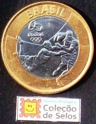 Moeda pertencente à série formada por 16 exemplares comemorativos, de circulação normal, emitidas por ocasião dos “JOGOS OLÍMPICOS RIO 2016”.