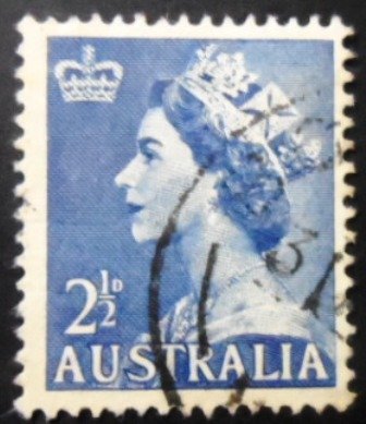 Selo postal Definitivo Circulado Emissão: 1954 Catálogos: Mi AU 235 – Yt AU 196A Medidas: 21 x 24mm Impressão: Recesso Valor facial: 2½ d – Penny
