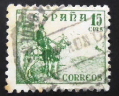 Selo postal Definitivo Circulado Emissão 1939 Catálogo Mi ES 769 -> Usar somente como referência, sem estudo de variedades Medidas 26 x 22mm Arte Blas Pérez Irujo Impressão Litografia Valor facial 15 c