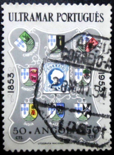 Selo postal Comemorativo Circulado Emissão: 1953 Catálogos: Mi AO 388 – Yt AO 377 Medidas: 30 x 40mm Impressão: Litografia Tiragem: 1.000.000 Valor facial: 50 c
