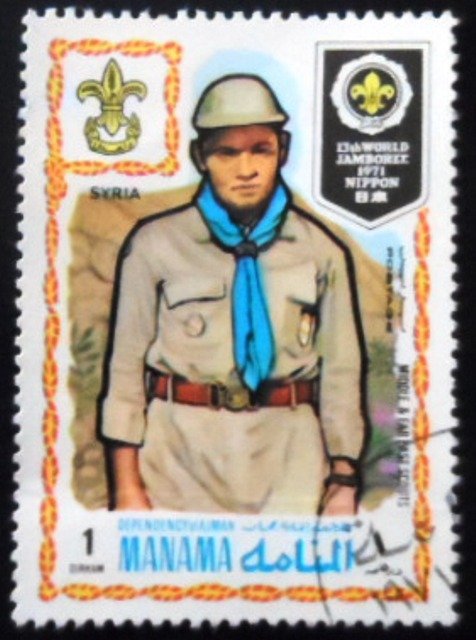 Selo postal Comemorativo obliterado NÃO CIRCULADO Emissão: 1971 Catálogos: Mi AJ-MN 465A – Yt AJ-MN 43A Medidas: 32 x 45mm Impressão: Offset Valor facial: 1 Dirham