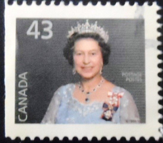 Selo postal Definitivo CIRCULADO Emissão: 1992 Catálogo: Mi CA 1339 Dr SEM PERFURAÇÃO NA BORDA DIREITA Medidas: 26 x 22mm Arte: Chris Candlish, Tom Yakobina e Yousuf Karsh Impressão: Offset Valor facial: 43 ¢ – Cêntimo