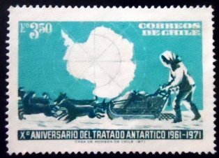 1982 - Map of Antarctica and Dog Sled surcharged quantidade