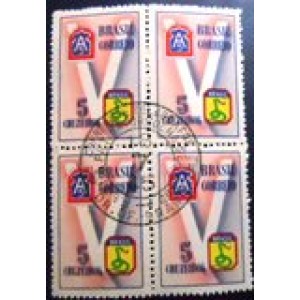 Quadra de selos postais Comemorativos com goma, obliterada, NÃO CIRCULADA