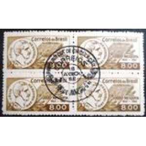 Quadra de selos postais Comemorativos com goma, NÃO CIRCULADA, obliterada com Carimbo de 1º Dia de Circulação do Rio de Janeiro - Gb