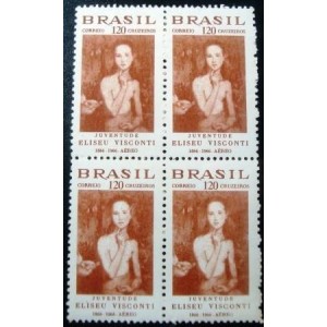Quadra de selos postais Correio Aéreo NÃO CIRCULADA