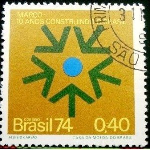 Selo postal Comemorativo com goma, obliterado, NÃO CIRCULADO
