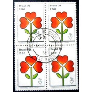 Quadra de selos postais Comemorativos obliterada com Carimbo de 1º Dia de Circulação de São Paulo - SP, NÃO CIRCULADA