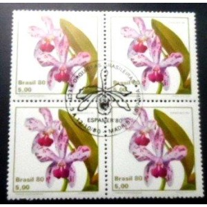 Quadra de selos postais Comemorativos com goma, obliterada com Comemorativo de MADRID, ESPANHA, Não Circulada