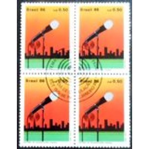 Quadra de selos postais Comemorativos com goma, obliterada com Carimbo Único CPD / CBC do RIO de JANEIRO - RJ, NÃO CIRCULADA