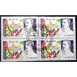 Quadra de selos postais Comemorativos com goma, NÃO CIRCULADA, obliterada com Carimbo único CPD / CBC dO Rio de Janeiro, RJ