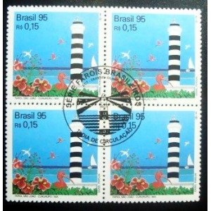 Quadra de selos postais Comemorativos com a goma perfeita NÃO CIRCULADA obliterada com Carimbo Único CPD / CBC de OLINDA, PE
