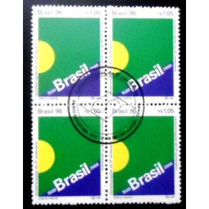 Quadra de selos postais Comemorativos com goma NÃO CIRULADA obliterada com Carimbo Único CBC/CPD de Porto Seguro - BA