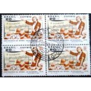 Quadra de selos postais Comemorativos obliterada com Carimbo de 1º Dia de Circulação de São Paulo, Não Circulada