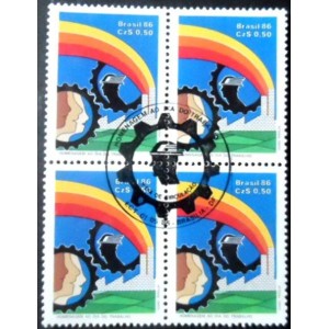Quadra de selos postais Comemorativos com goma, obliterada com Carimbo Único CPD / CBC de BRASÍLIA, DF , NÃO CIRCULADA