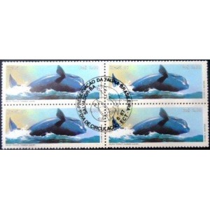 Quadra de selos postais Comemorativos com goma, NÃO CIRCULADA, obliterada com Carimbo Único CPD / CBC de SALVADOR - BA