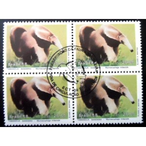 Quadra de selos postais Comemorativos com goma, NÃO CIRCULADA, obliterada com Carimbo Único CBC/CPD de Brasília - DF