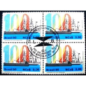 Quadra de selos postais Comemorativos com goma NÃO CIRCULADA, obliterada com Carimbo Único CPD / CBC do Rio de Janeiro, RJ
